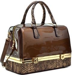 Dasein(R) Patent Leather Barrel Body Satchel with Bottom Compartment