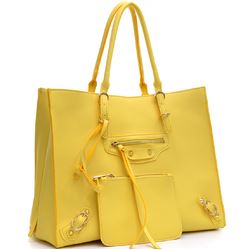 Dasein(R) Saffiano Leather 2-in-1 Tote Bag with Expandable Zipper Sides