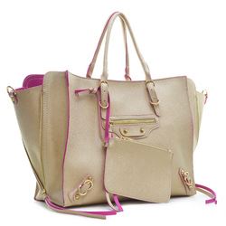 Faux Leather 2-in-1 Tote Bag with Expandable Zipper Sides