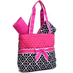 Quilted Quatrefoil Print Diaper Tote Set With Changing Mat