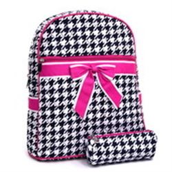 Houndstooth Backpack with Convertible Shoulder Straps - Black / Pink Trim