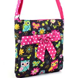 Owl Print Quilted Messenger Bag With Polka Dot Trim