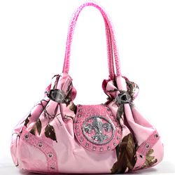 Dasein(R) Studded Satchel Bag In Realtree (R) Camouflage With Rhinestone Fleur De Lis -Camouflage/Pi