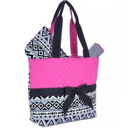 Aztec Print Quilted 3Piece Diaper Tote Set With Removable Bow