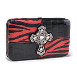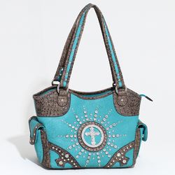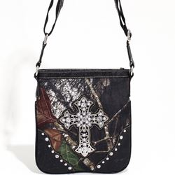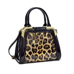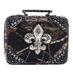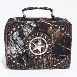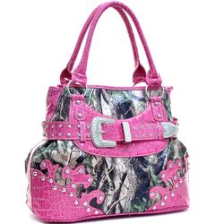 Faux Patent Camo Rhinestone Buckle Hand Bag