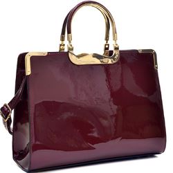 Patent Faux Leather Gold-Tone Corner Satchel with Shoulder Strap
