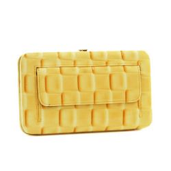 Extra Deep 2 Tone Frame Wallet With Square Embossed Pattern - Yellow