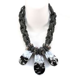 Island Braided Seed Bead Necklace w/ Shell Accents - Grey