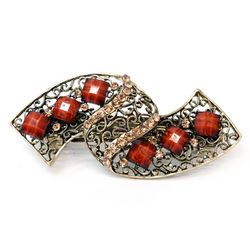 Gold Medieval Inspired Hair Barrette W/ Colored Stone Accents - Brown
