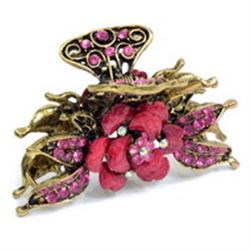 Gold Medieval Inspired Hair Barrette w/ Colored Stone Accents - Brown
