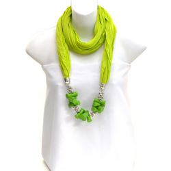 Art Deco Shaped Wood Textured And Silver Accent Tone Continuous Loop Infinity Scarf