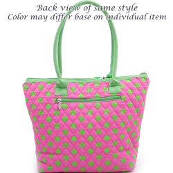 Quilted Polka Dot Tote W/ Ribbon Accents - Pink/Blue