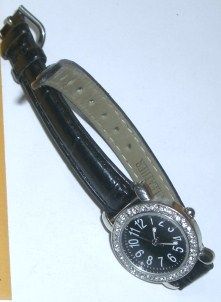 WATCH *JAPAN MOVEMENT* SS/BLACK BAND WITH STONES AROUND BEZEL!! ***Coin, Currency & All Items Listed in this auction - Grades, Conditions and Values are not Safe Deposit Coins LLC Responsibilty. Grades, Condition and Values are determined by Consigner(s) & Buyers ONLY