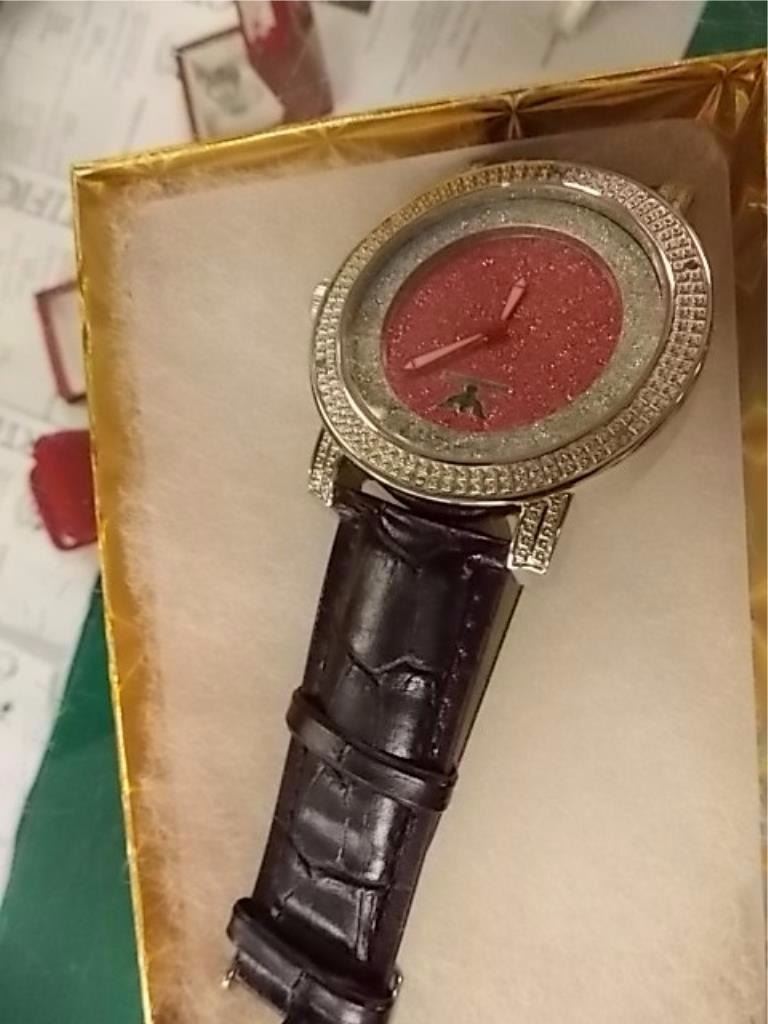 WATCH - NEW DIAMOND KING WATCH SET WITH 6 BRILLIANT DIAMONDS, RED FACE & LEATHER STRAP - RETAIL ESTIMATE $425