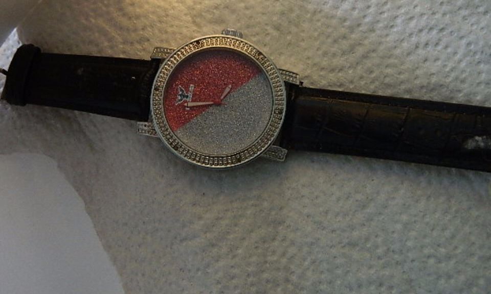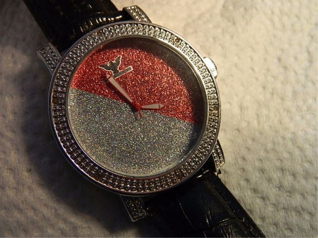 WATCH - NEW - DIAMOND KING - WORKING WITH 6 GENUINE DIAMONDS INSET INTO FACE - RED / SILVER - SUGGESTED RETAIL $400