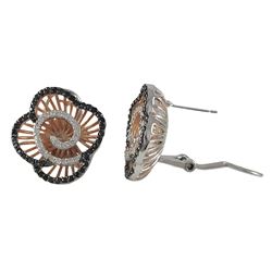 Rose And Black Over Sterling Silver Flower With CZ Post Clip Earrings- 21M
