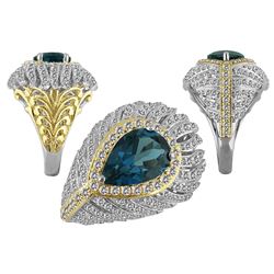 TT SS/YGPLT LONDON BLUE TOPAZ / WHITE TOPAZ RING - Size 7 (#10193MUL)
