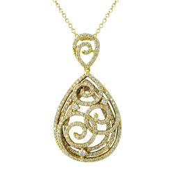 Gold Plated Sterling Silver, 13.5X17.5Mm Teardrop, Champagne Druzy Natural Stone With CZ Border, Pendant, 0.98"