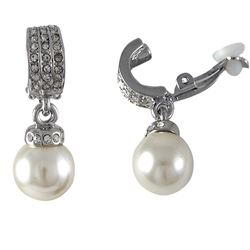 Silver Tone Alloy Hoop Clip-On Earrings With Crystals And Pearl -1.3"