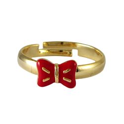 Red Enamel Bow - Gold Tone Brass Ring Size 5 Adjustable