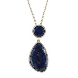 Lapis/Lazurite Faceted Semi Precious Stone With CZ Border, 12Mm Round Circle, Gold Plated Sterling Silver Pendant, 1.61