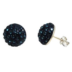 Midnight Blue Shamballa Half Ball 10Mm Earrings Sterling Silver Post
