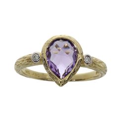 14K Yellow Gold Pear Shaped Amethyst And Diamond Ring