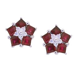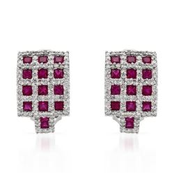 Checkered Ruby/Diamond Earrings In 14K White Gold | 288629