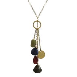Garnet Combination Of Semi Precious Stones On Gold Tone Brass Chain- 16" 3"