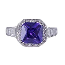 Amy CZ Square Center Stone Surrounded With White Czs, Sterling Silver Ring Size 7