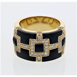 Inlay Onyx Diamond Ring in 14K Yellow Gold | 335088 6.5 Grams, featuring White Diamond Round ct 10 0.47 ct 60 ct 14 ct