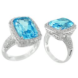 SILVER SKY BLUE TOPAZ / WHITE TOPAZ / DIAMOND RING - Size 7 (#8509MUL1) TOTAL CT WEIGHT 7.56