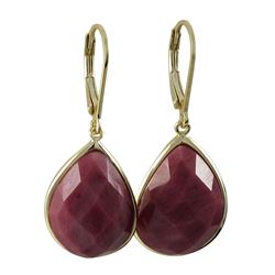 Red Enamel Heart With White Dots-Gold Tone Brass Lever Back Earrings- 0.59"