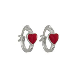 Red Enamel Heart With White Dots-Gold Tone Brass Lever Back Earrings- 0.59