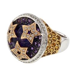 Round Purple Amethyst Ring w/ Stars & Diamonds in 14K White Gold | 291109 6.5 Grams, featuring 1.77 AMETHYST ct 56 4.26 White Diamond Rou...