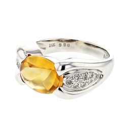Oval-Cut Citrine Tension-Set Diamond Ring In 14K White Gold | 131423