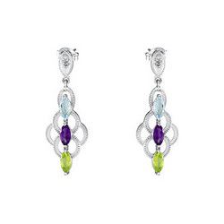 Metal: Gold Open hoops wrapped with peridot, pink ruby and citrine, about 1-3/4" long.Let us know if you want a different size, we can mo...