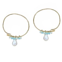 Metal: RoseGold Open hoops wrapped with peruvian opal and moonstone, about 1-3/4" long. Let us know if you want a different size, we...
