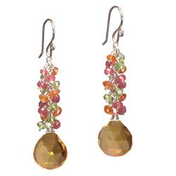 Metal: RoseGoldClusters of peridot, carnelian, ruby, and whiskey quartz, about 2" long Available in either 14K gold-filled, rose gold-filled, o...