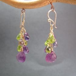 Metal: Gold Peridot, iolite, tanzanite, and amethyst, about 1-3/4" long Available in either 14K gold-filled, rose gold-filled, or sterling s...