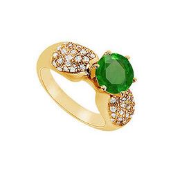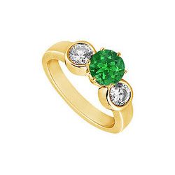 Emerald and Diamond Engagement Ring : 14K Yellow Gold - 1.25 CT TGW