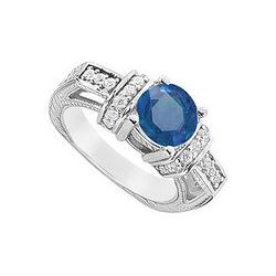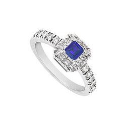 Sapphire and Diamond Engagement Ring : 14K White Gold - 0.75 CT TGW