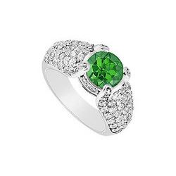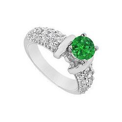 Emerald and Diamond Engagement Ring : 14K White Gold - 0.75 CT TGW