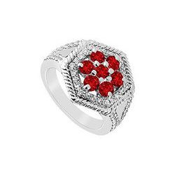 Ruby and Diamond Flower Ring : 14K White Gold - 1.50 CT TGW