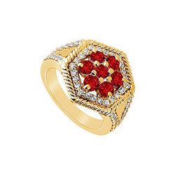 Ruby and Diamond Flower Ring : 14K Yellow Gold - 1.50 CT TGW