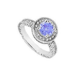 Tanzanite and Diamond Halo Engagement Ring : 14K White Gold - 1.50 CT TGW