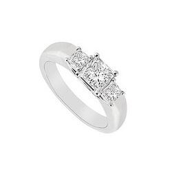 Representing past present and future three princess-cut diamonds are prong-set in the center. Made in 14K white gold this three stone ring has a to