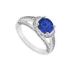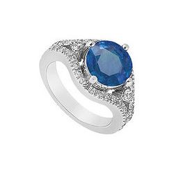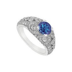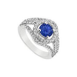 Sapphire and Diamond Engagement Ring : 14K White Gold - 1.50 CT TGW