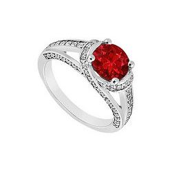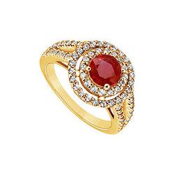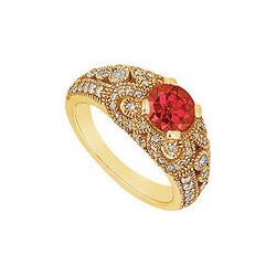 Ruby and Diamond Engagement Ring : 14K Yellow Gold - 1.00 CT TGW