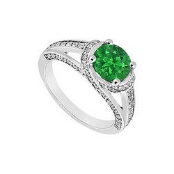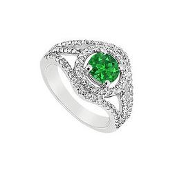 Emerald and Diamond Engagement Ring : 14K White Gold - 1.25 CT TGW